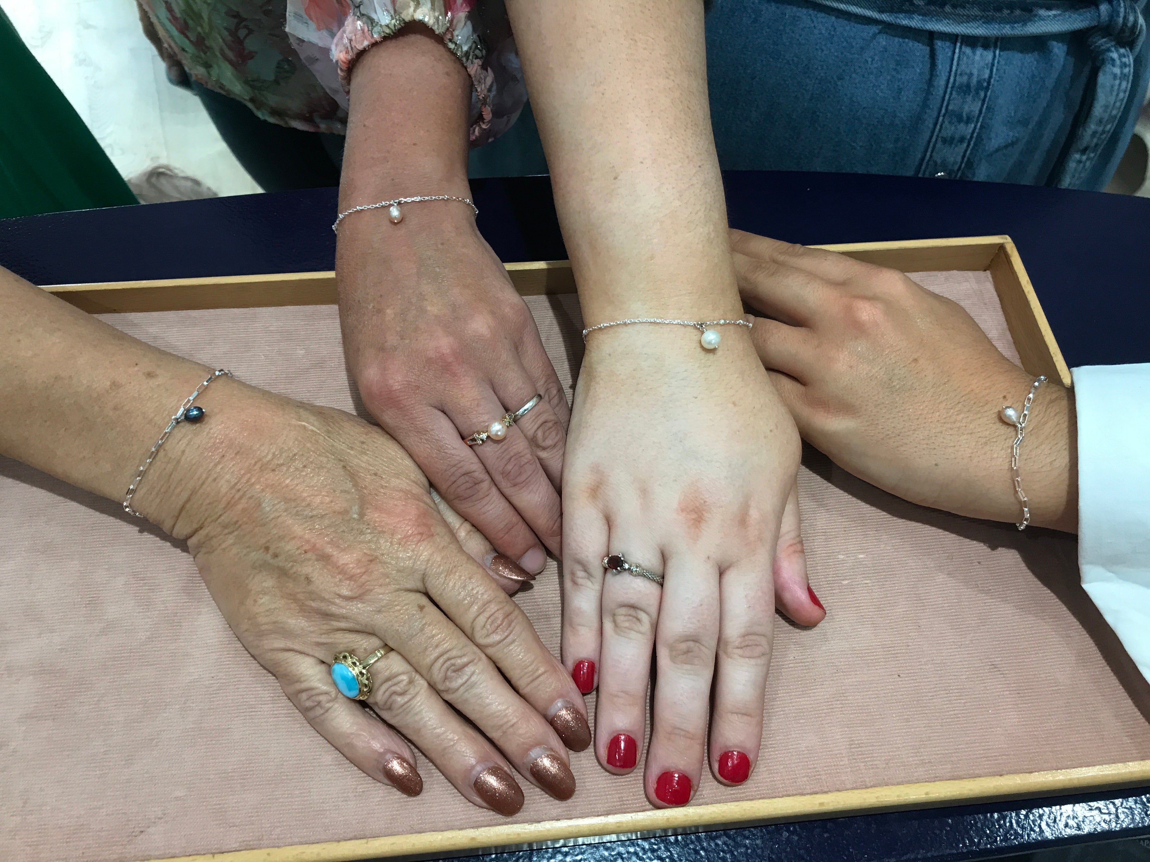 Mae'r broses yn gyflym, yn ddiboen, ac yn gwbl ddiogel. Mae ein gemwyr profiadol yn mesur y gadwyn yn ôl eich anghenion ac yn ei rhoi â laser yn fanwl gywir ar eich arddwrn gyda fflach gyflym o olau. Eich cysur a'ch diogelwch yw ein blaenoriaethau pwysicaf.